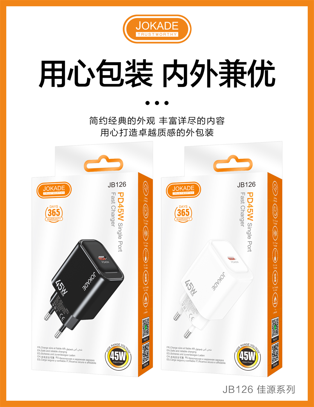 产品名称:JB126 佳源系列 PD45W充电器(欧规)