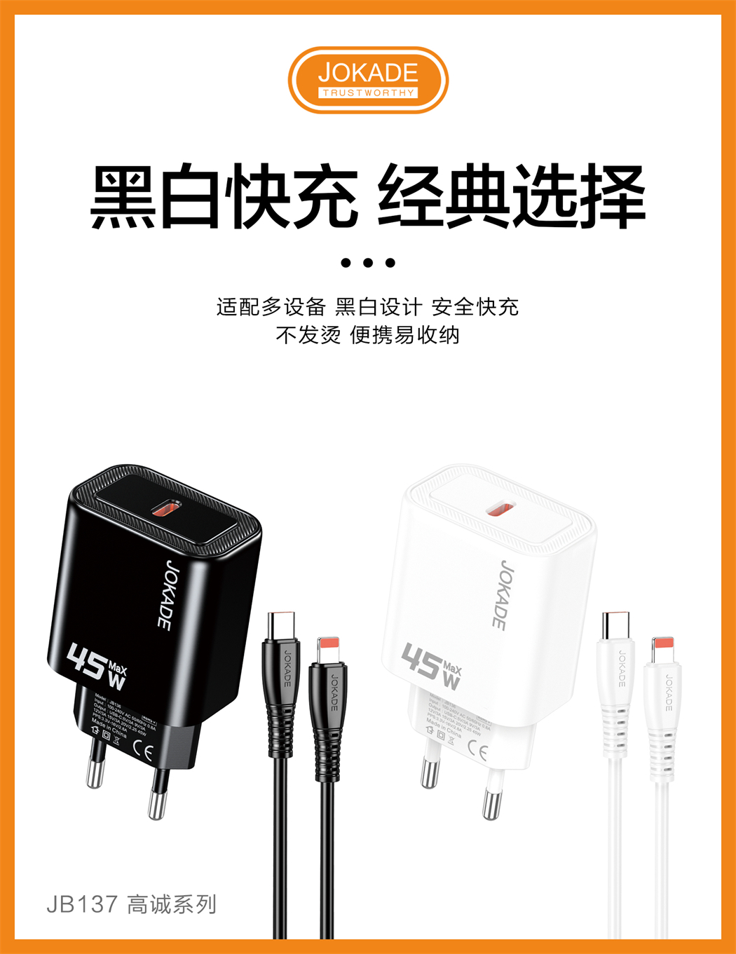 产品名称:JB137 高诚系列 PD45W充电器套装(欧规)Type-C to Lightning