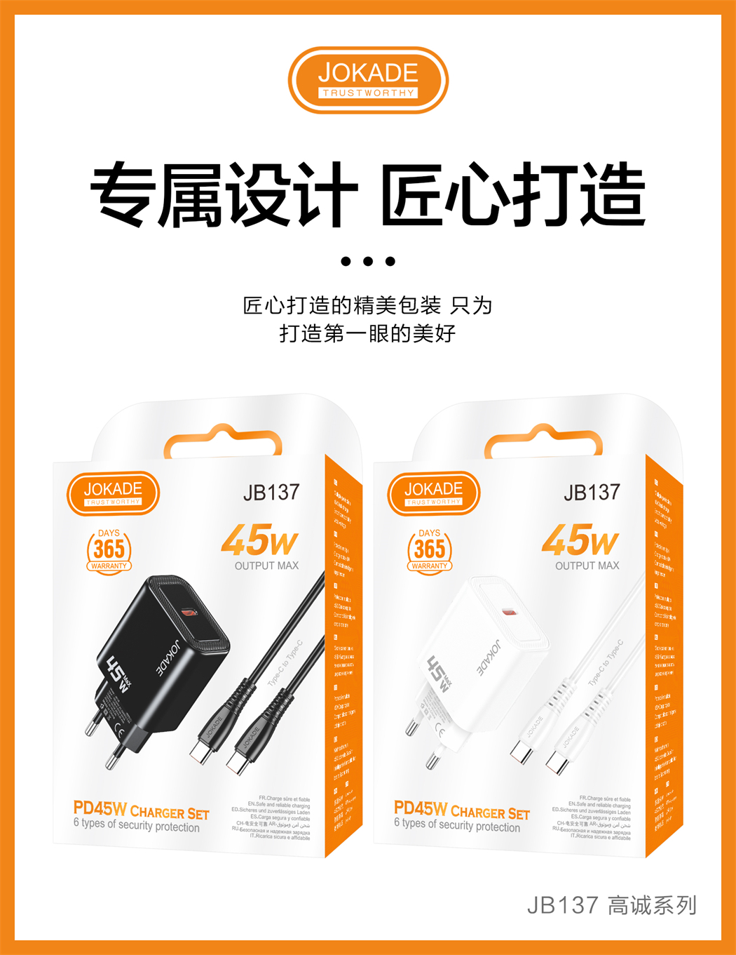 产品名称:JB137 高诚系列 PD45W充电器套装(欧规)Type-C to Type-C