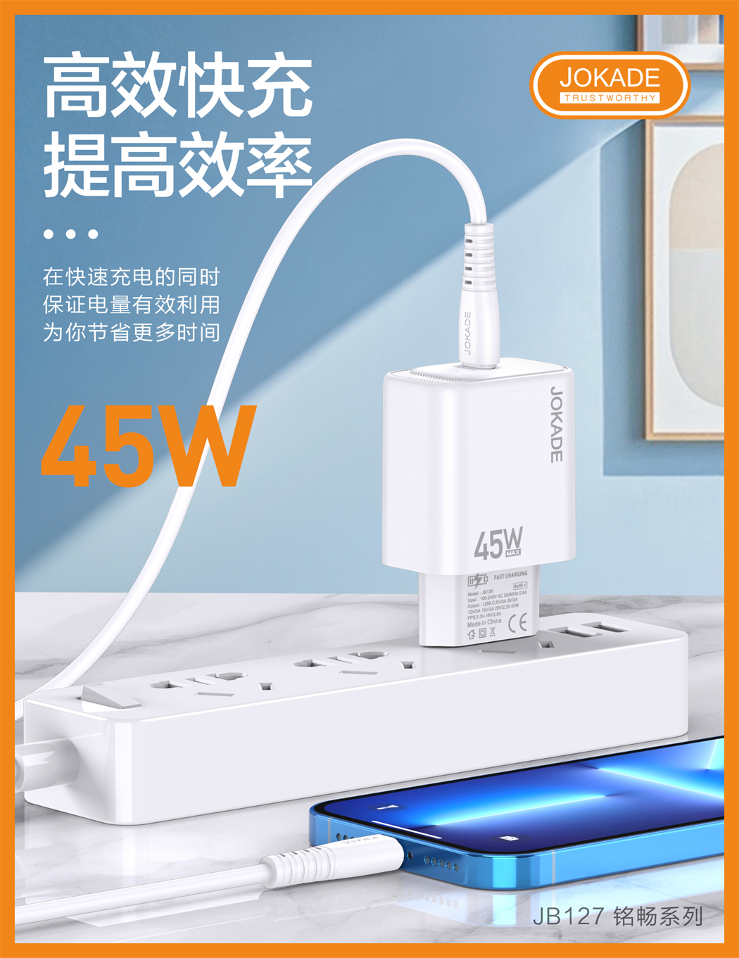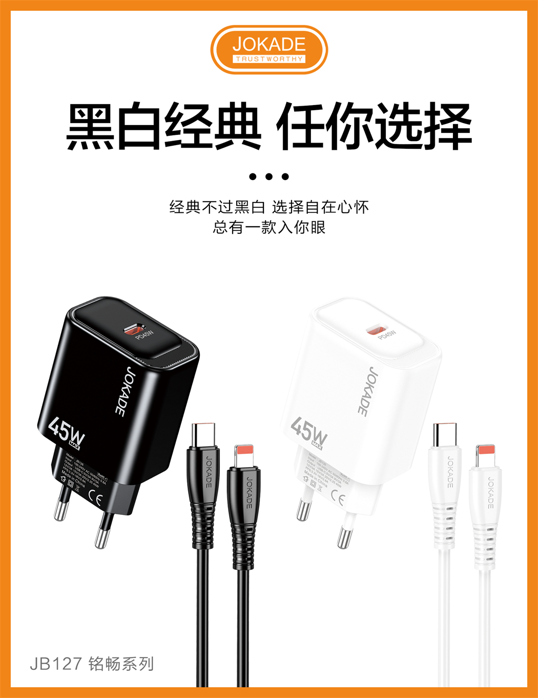 产品名称:JB127 铭畅系列 PD45W充电器套装Type-C to Lightning(欧规)