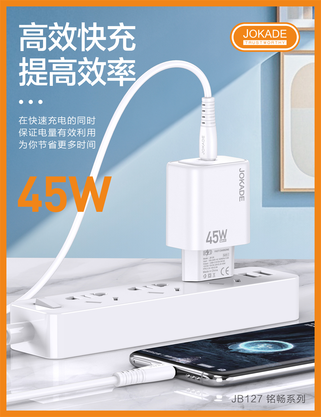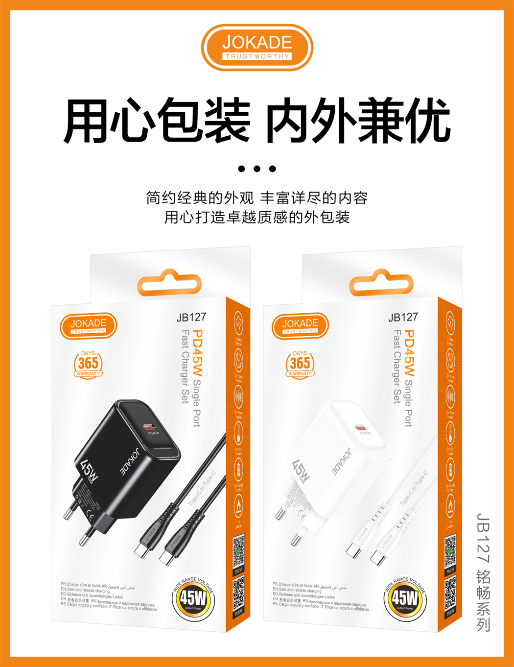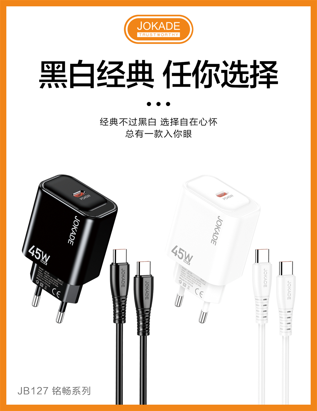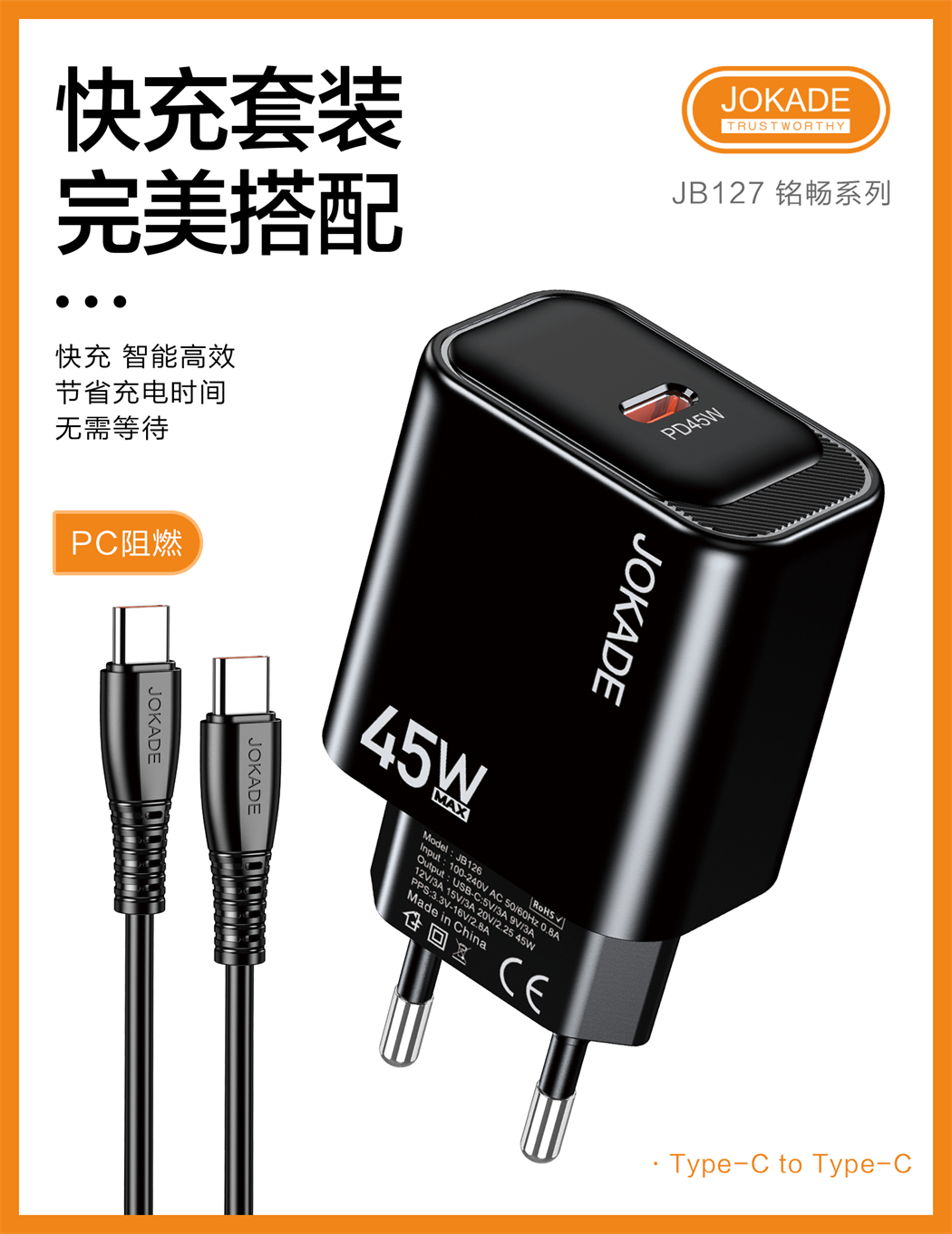产品名称:JB127 铭畅系列 PD45W充电器套装Type-C to Type-C(欧规)