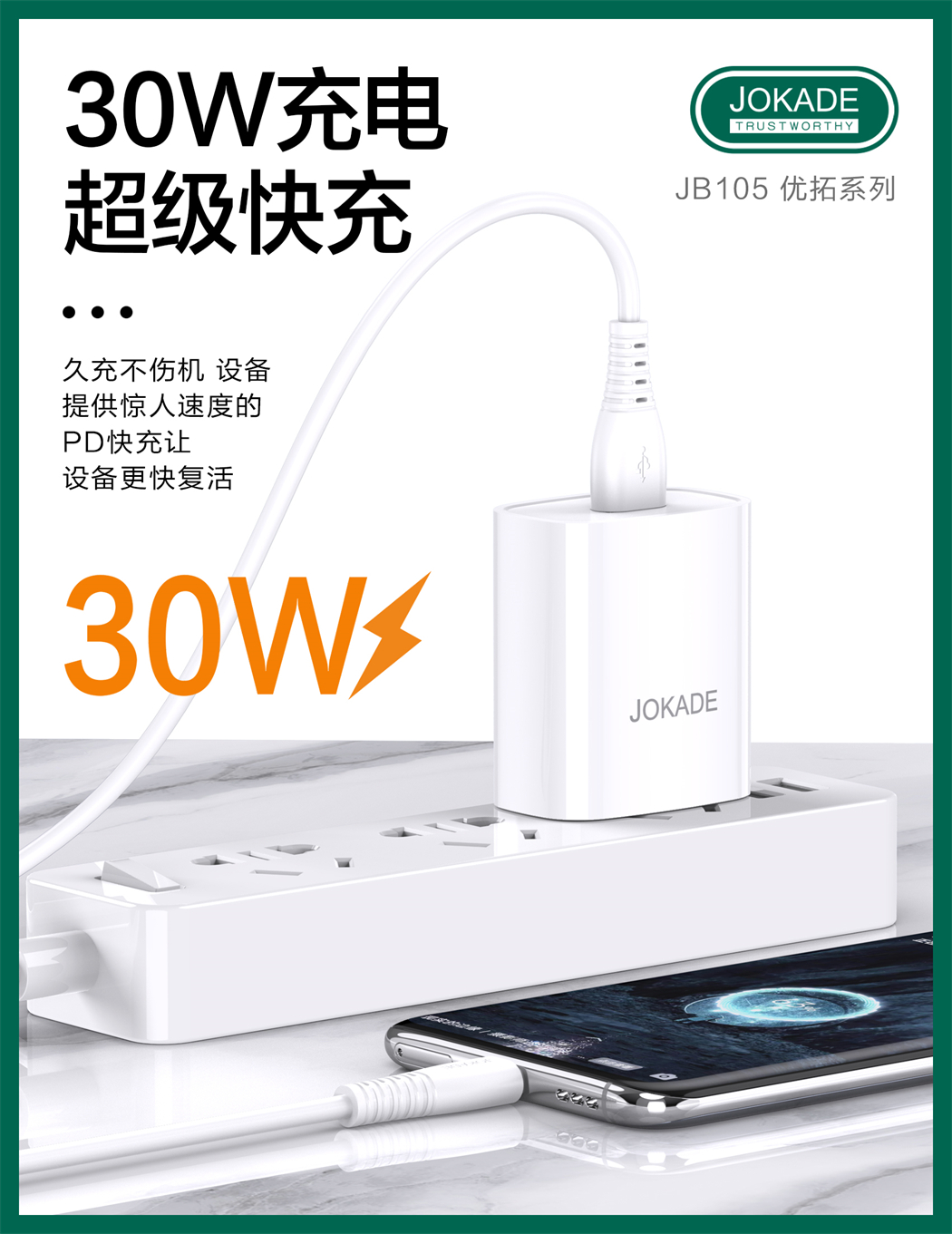 产品名称:JB105 优拓系列 单口 30W多协议充电器(US)
