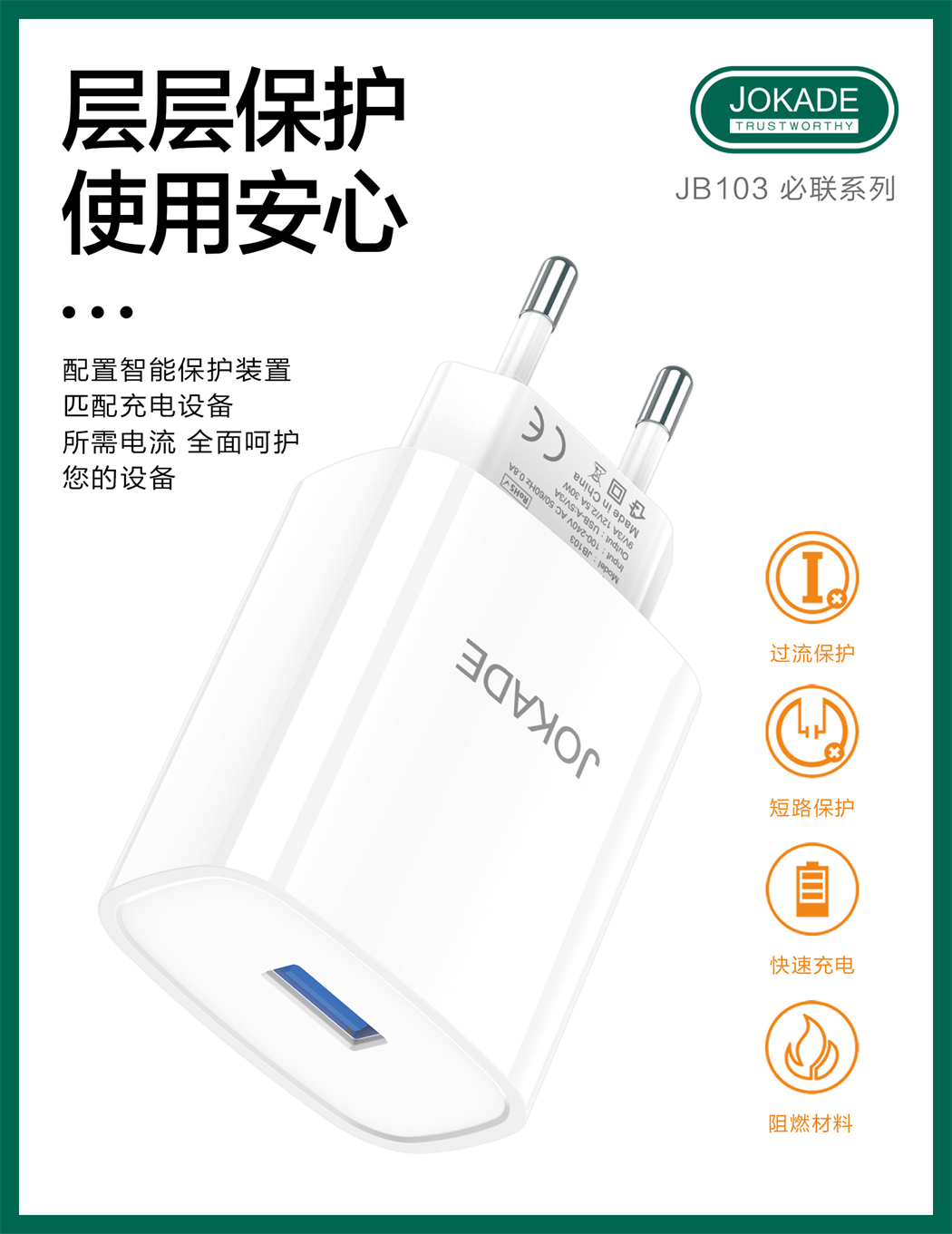 产品名称:JB103 必联系列 单口 30W多协议充电器(EU)
