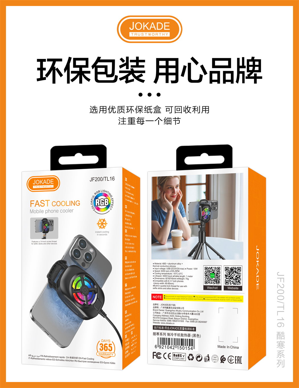 产品名称:JF200/TL16 酷寒系列 制冷手机散热器