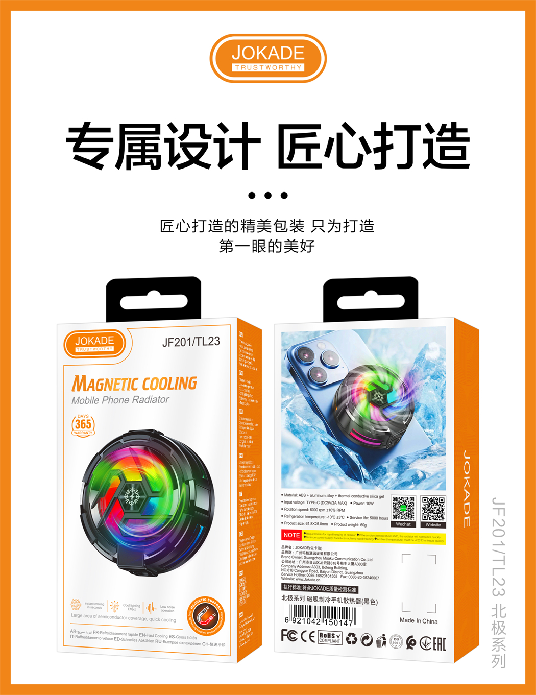 产品名称:JF201/TL23 北极系列 磁吸制冷手机散热器