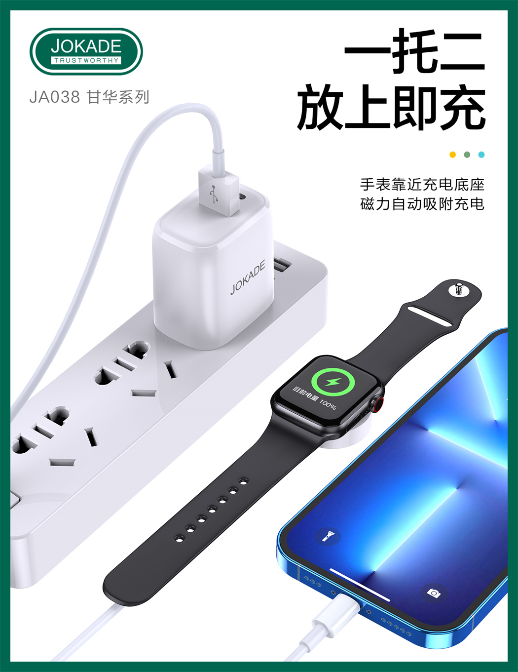 产品名称:JA038 甘华系列 iP+iWatch 一托二充电器