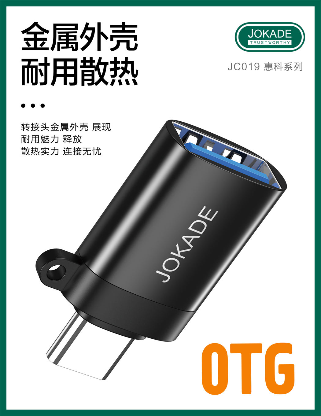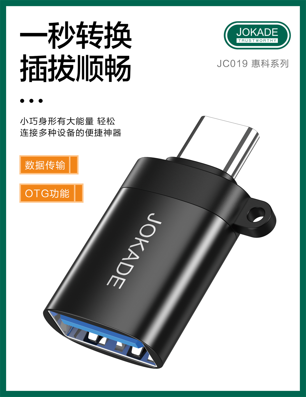 产品名称:JC019 惠科系列 Type-C公转USB母 OTG转接头