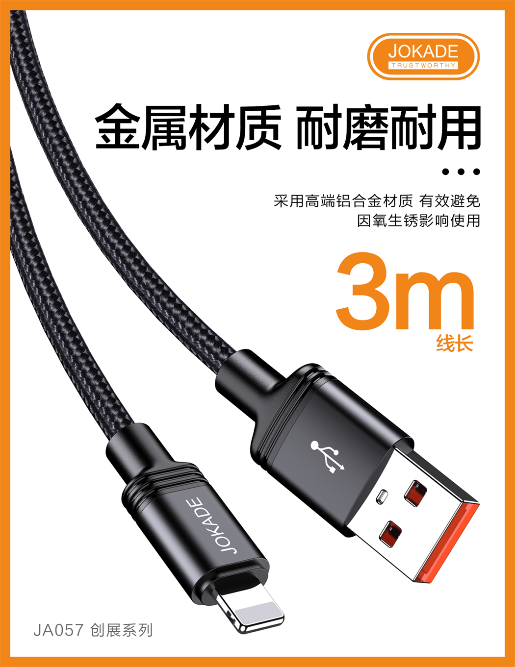 产品名称:JA057 创展系列 Lightning智能快充数据线 3米