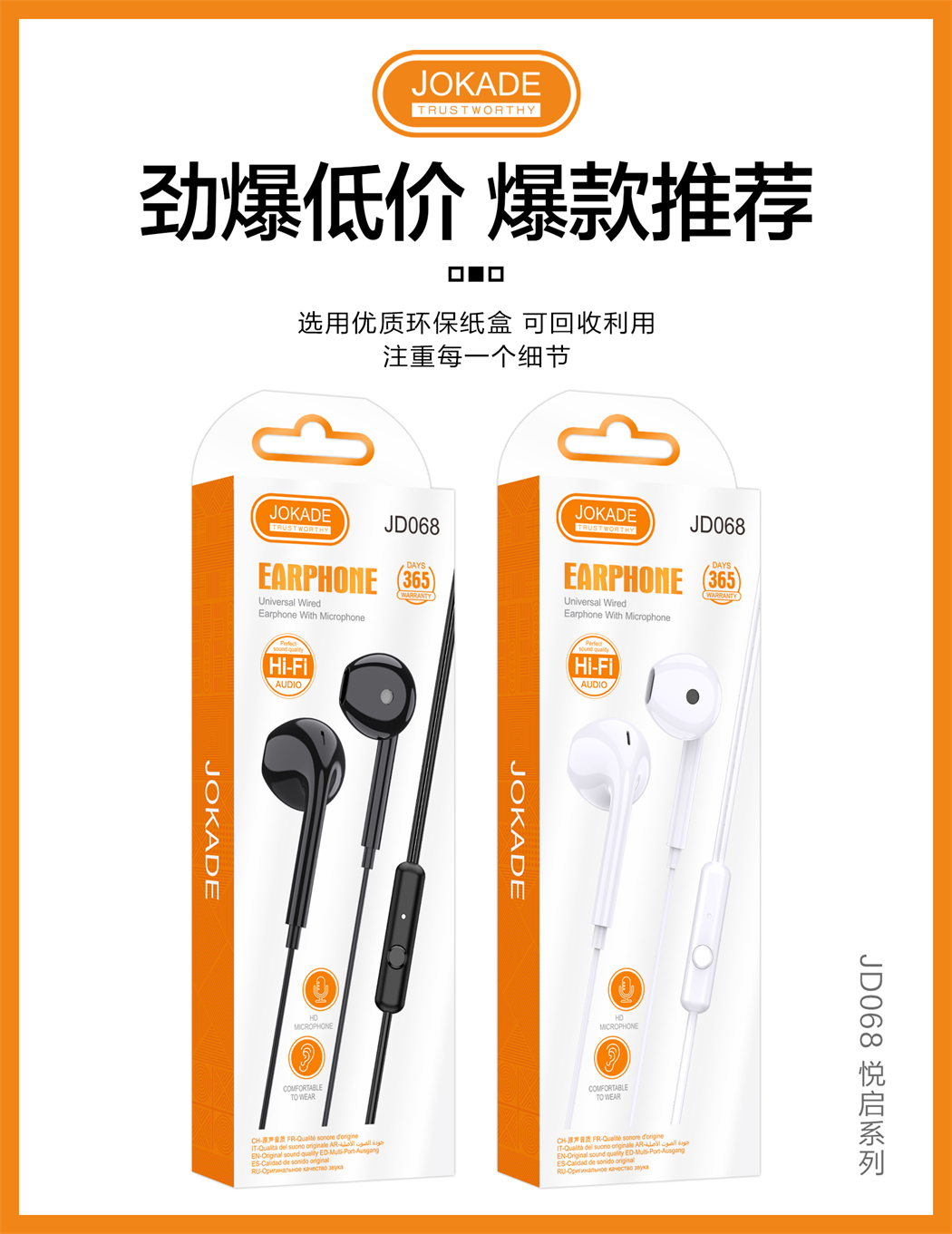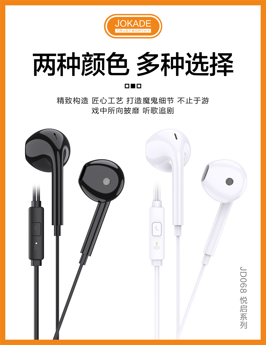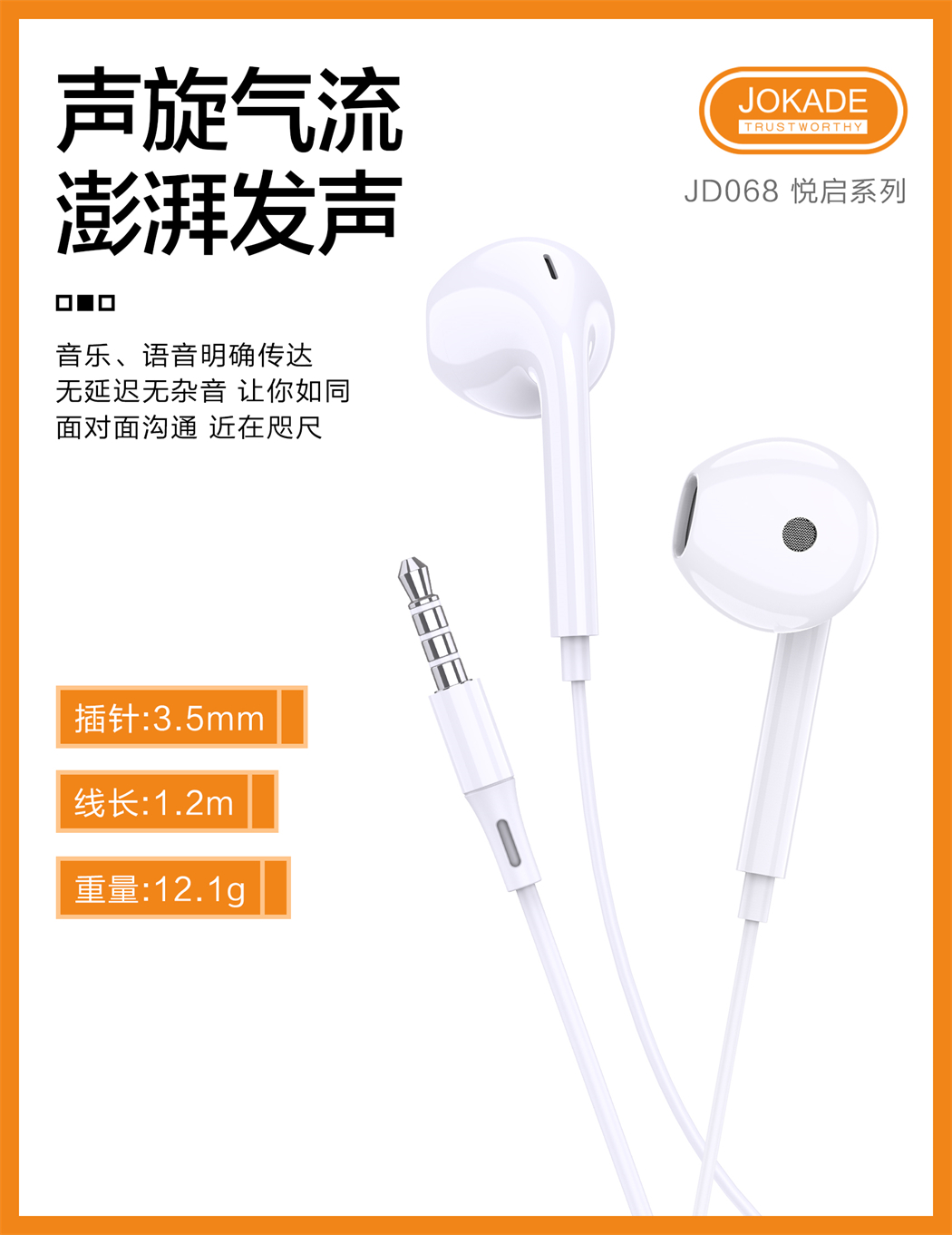 产品名称:JD068 悦启系列 通用线控带麦耳机 1.2米