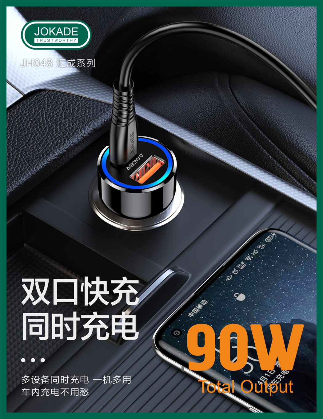 产品名称:JH048 汇成系列 90W双口车载充电器套装 (Type-C to Type-C)