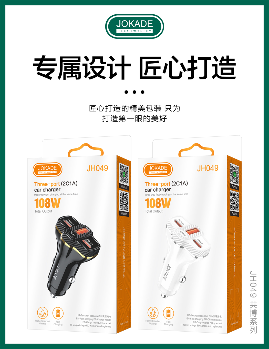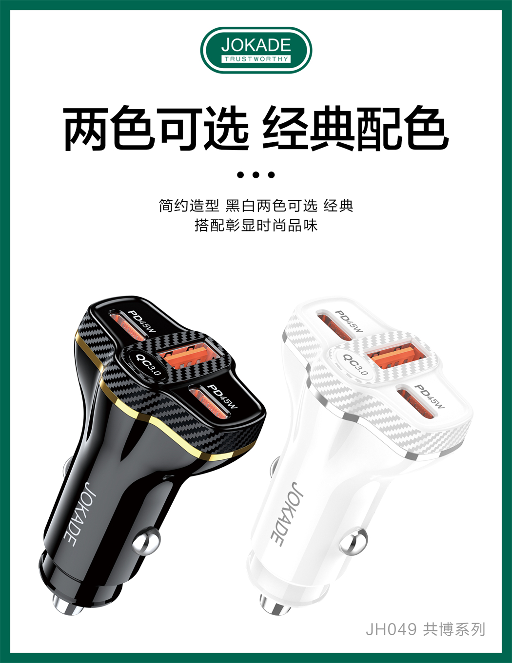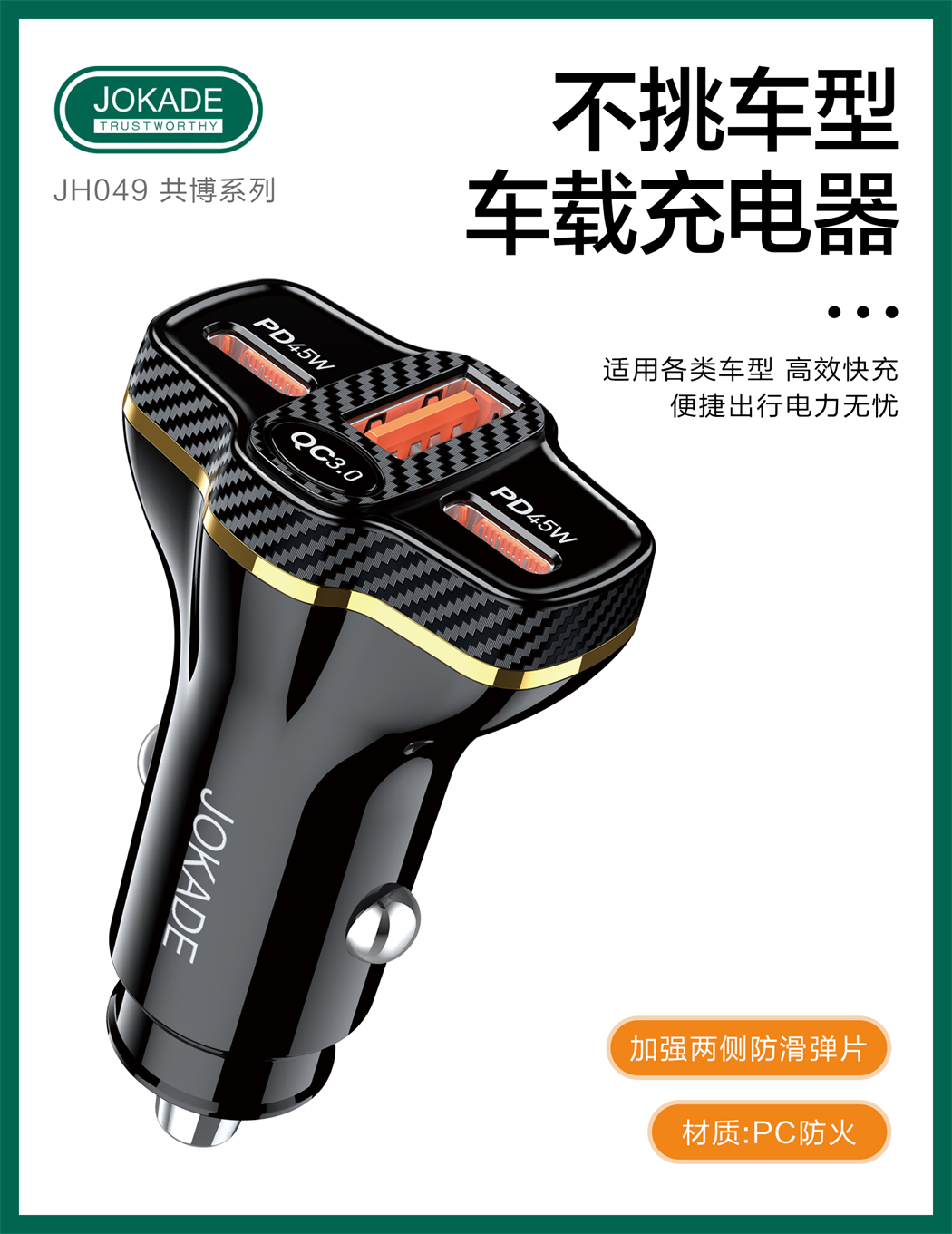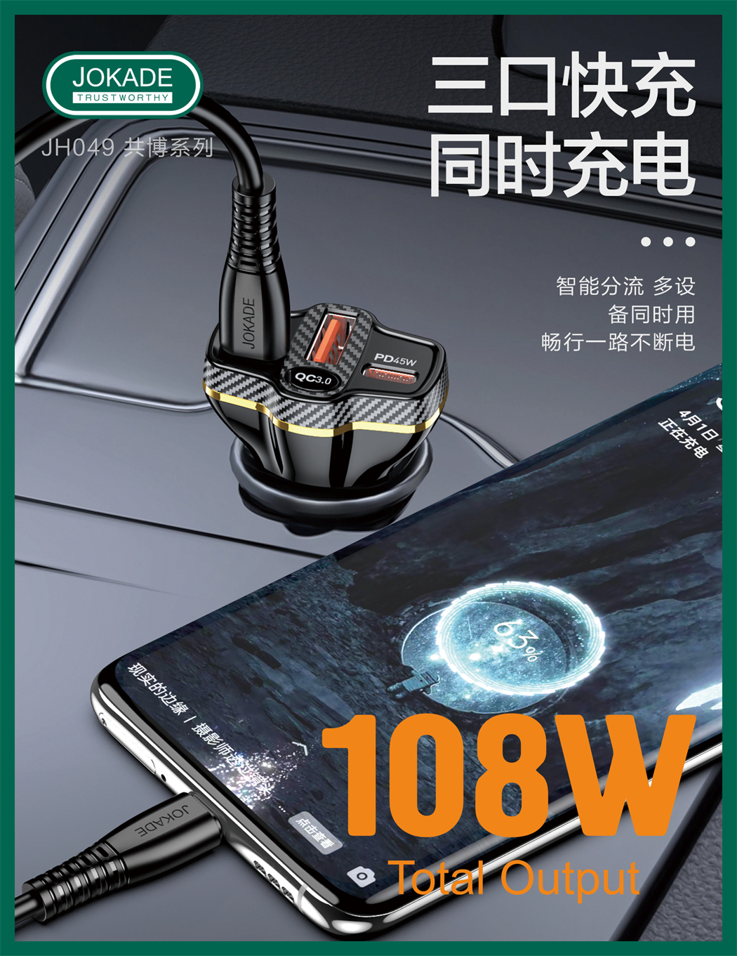 产品名称:JH049 共博系列 108W三口(2C1A)车载充电器