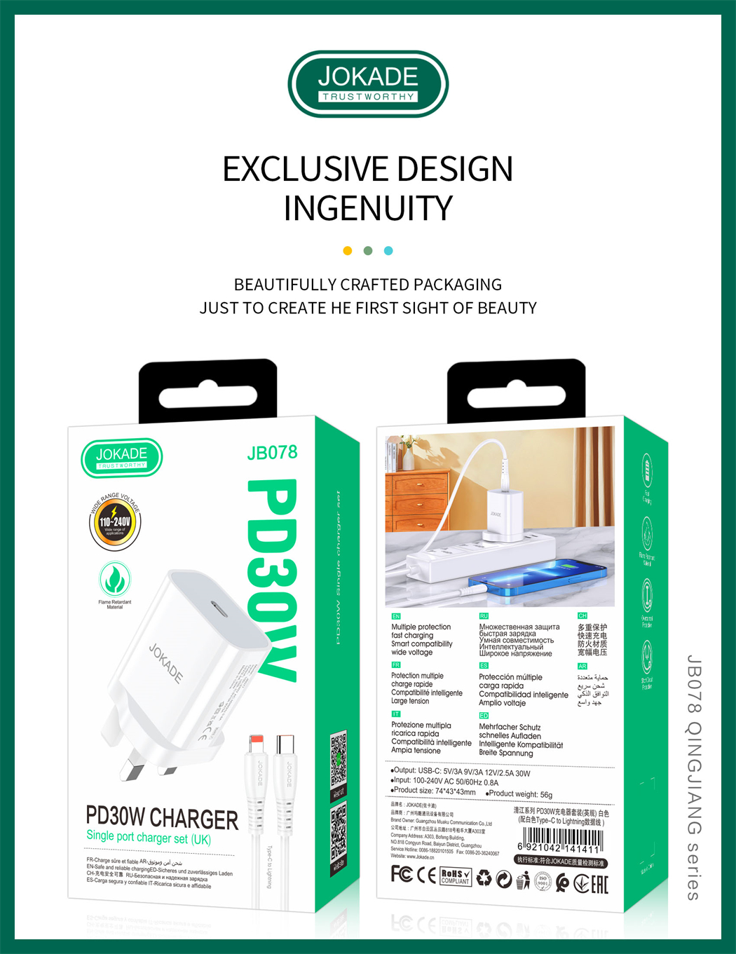 name:JB078 Qingjiang Series PD30W Charger Set (UK)Type-C to Lightning