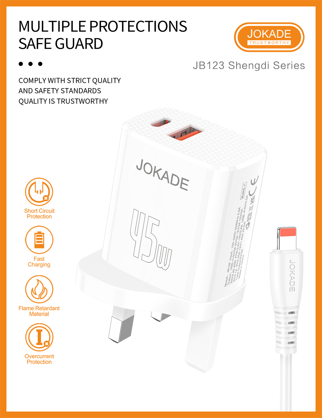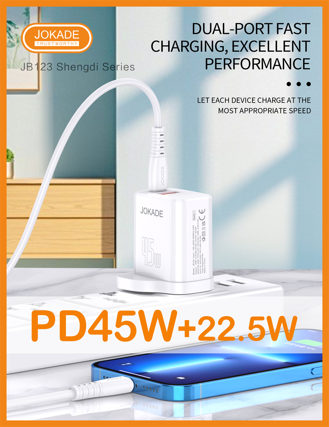 name:JB123 Shengdi Series PD45W+22.5W fully compatible charger set Type-C to