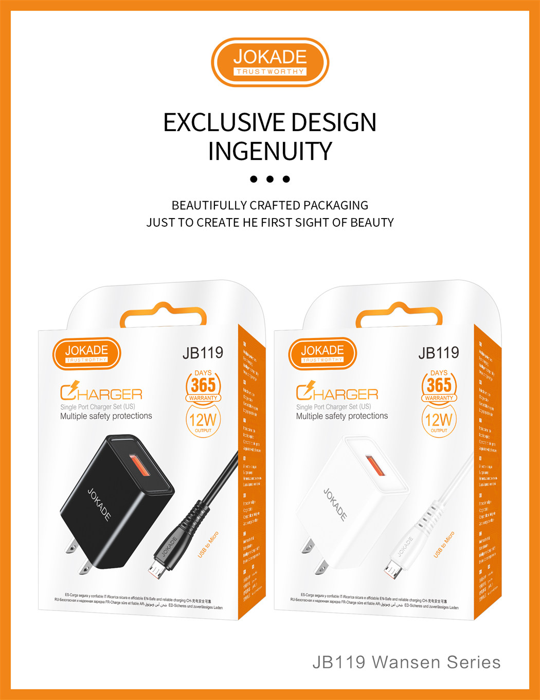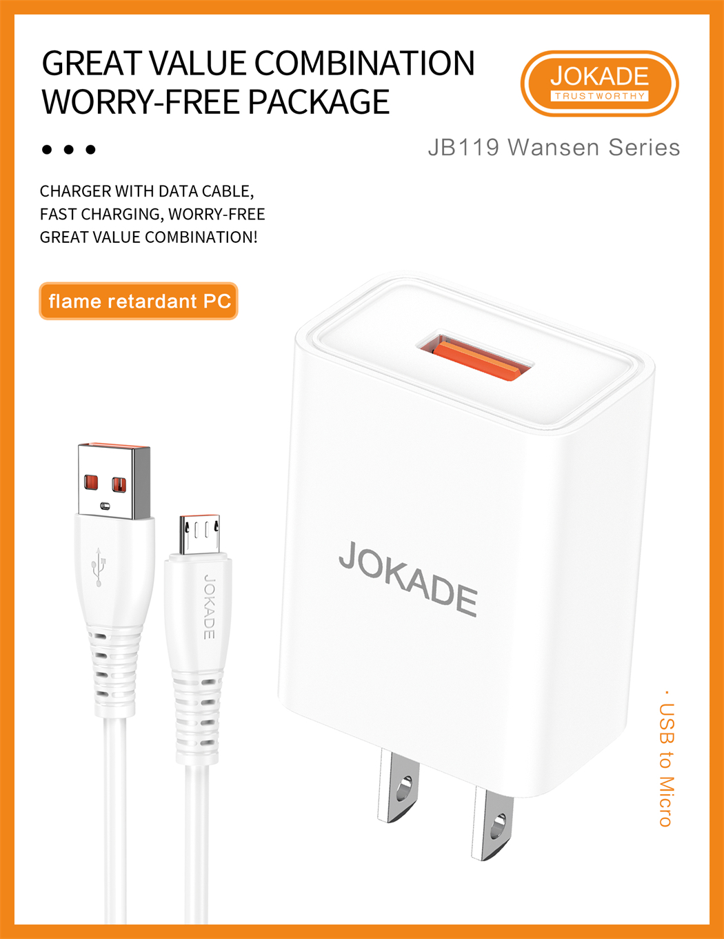 name:JB119 Wansen Series Single Port Charger Set USB to Micro (US Standard)