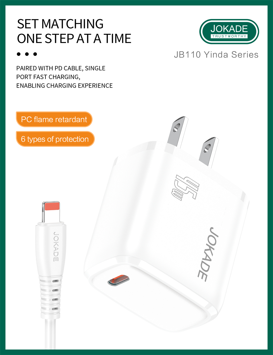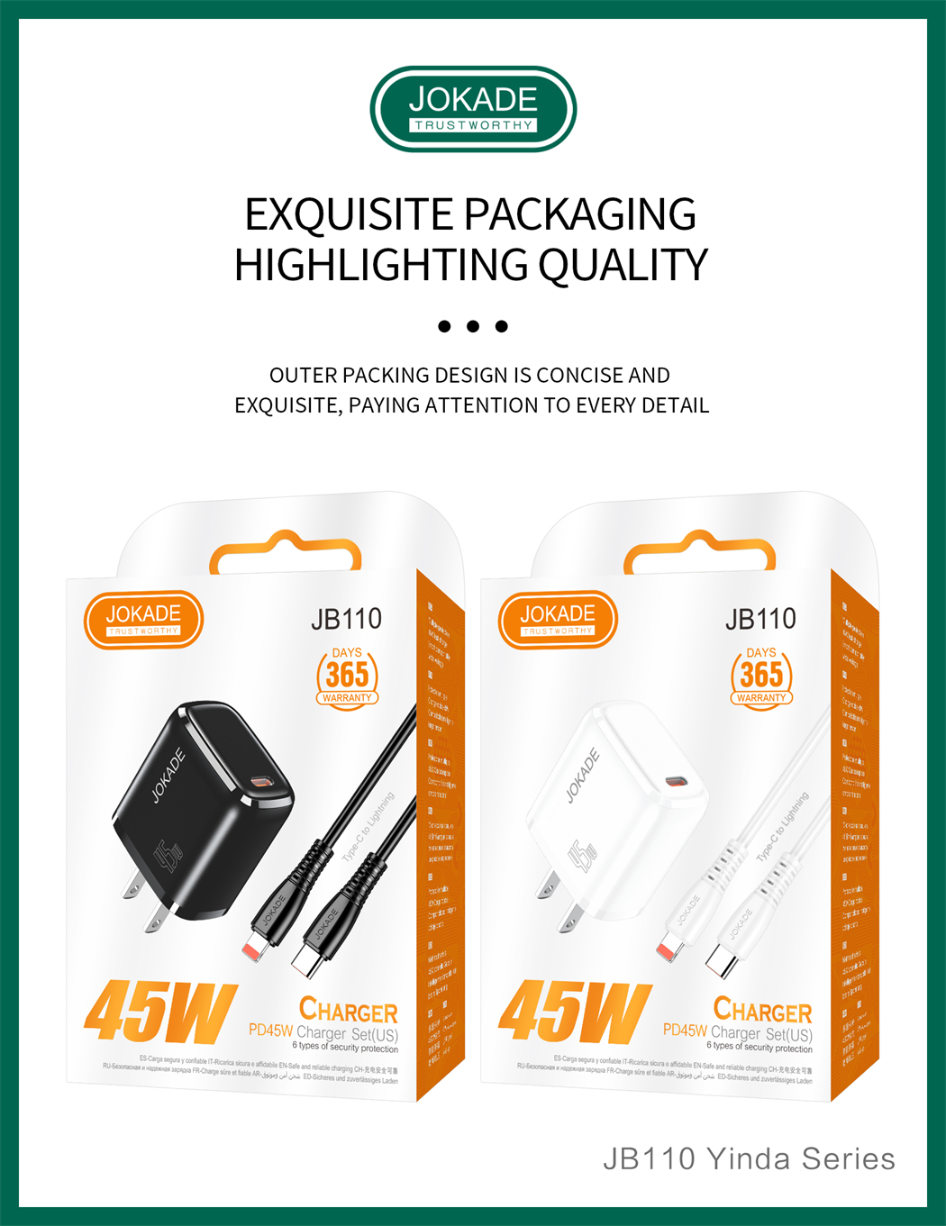name:JB110 Yinda Series PD45W Charger Set (US Standard) Type-C to Lightning