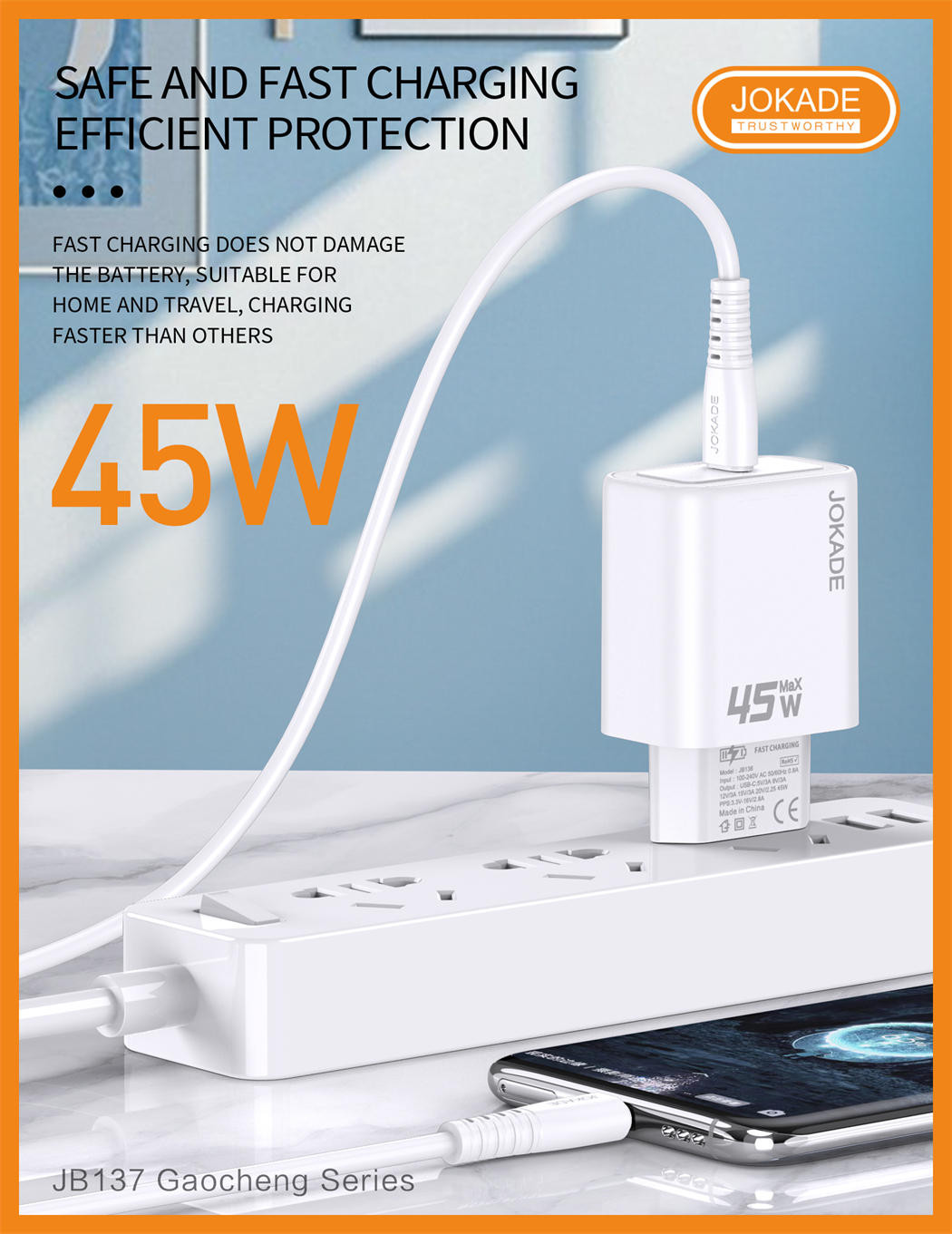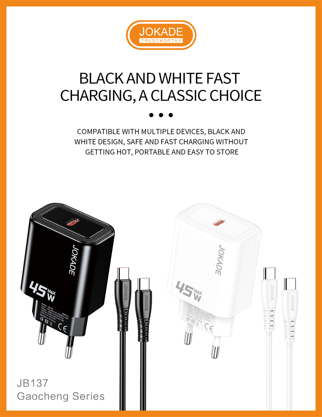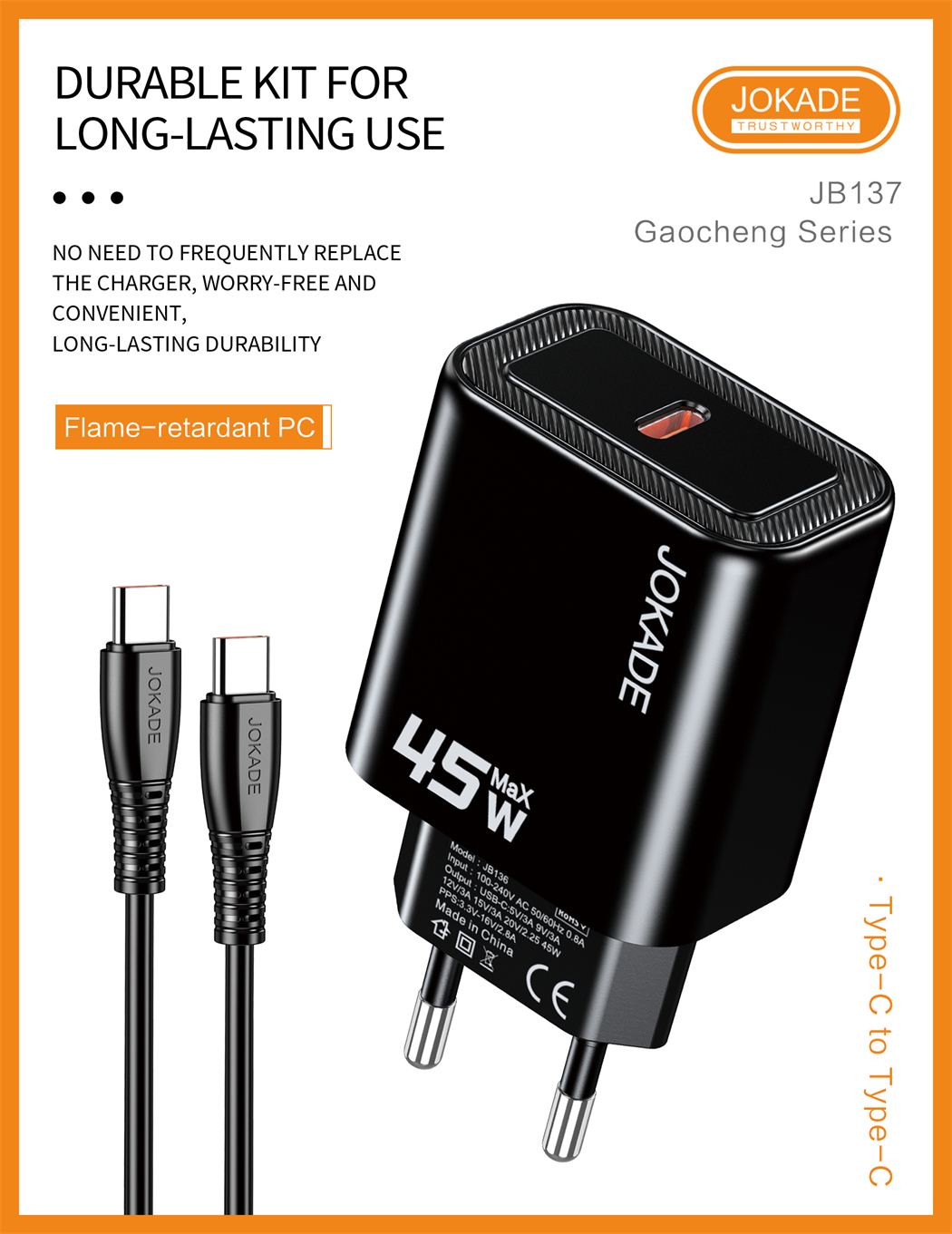 name:JB137 Gaocheng Series PD45W Charger Kit (EU) Type-C to Type-C