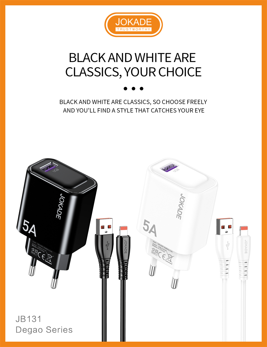 name:JB131 Degao Series Single-Port Charger Set with Lightning (EU Plug)