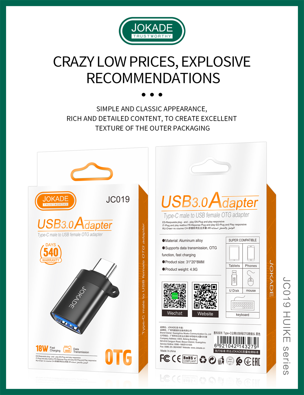name:JC019 HUIKE Type-C Male to USB Female OTG Adapter