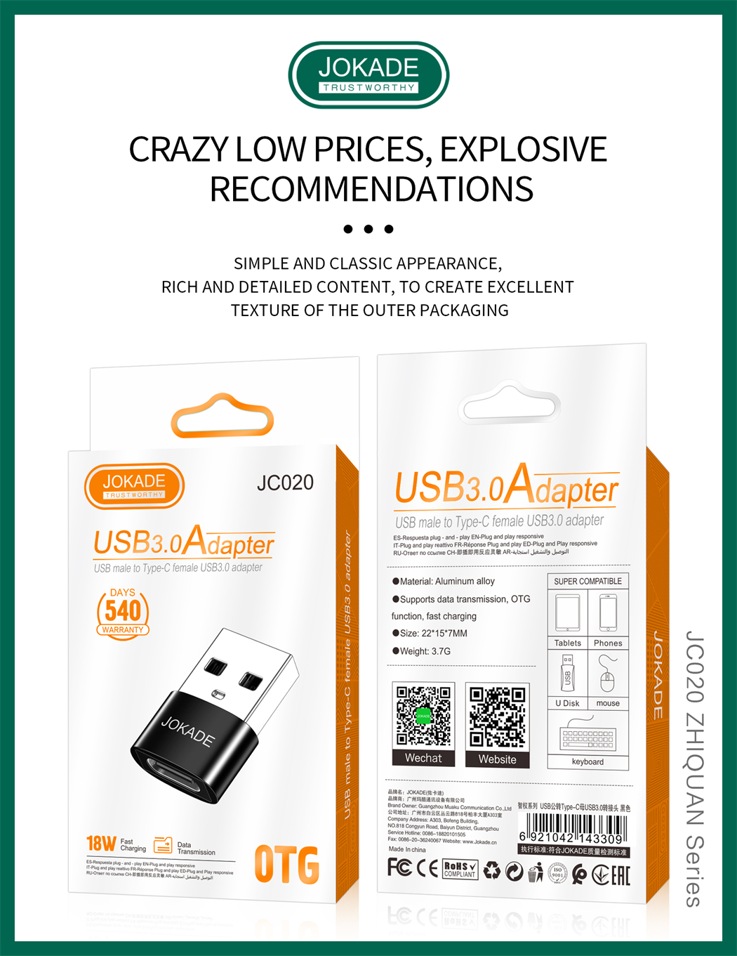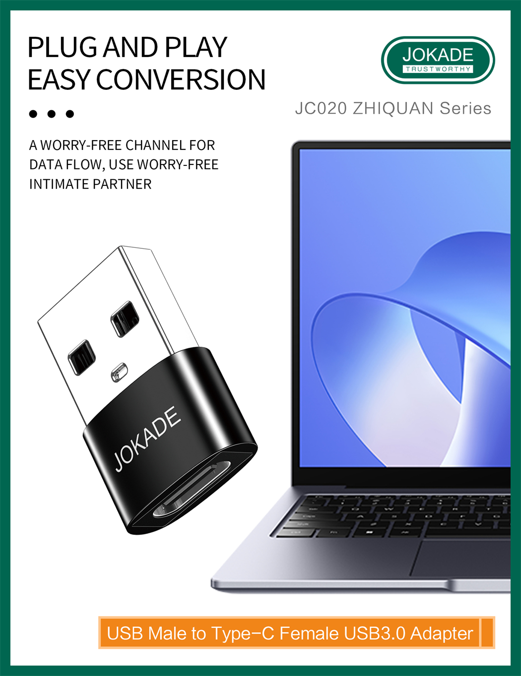 name:JC020 ZHIQUAN Series USB Male to Type-C Female USB3.0 Adapter