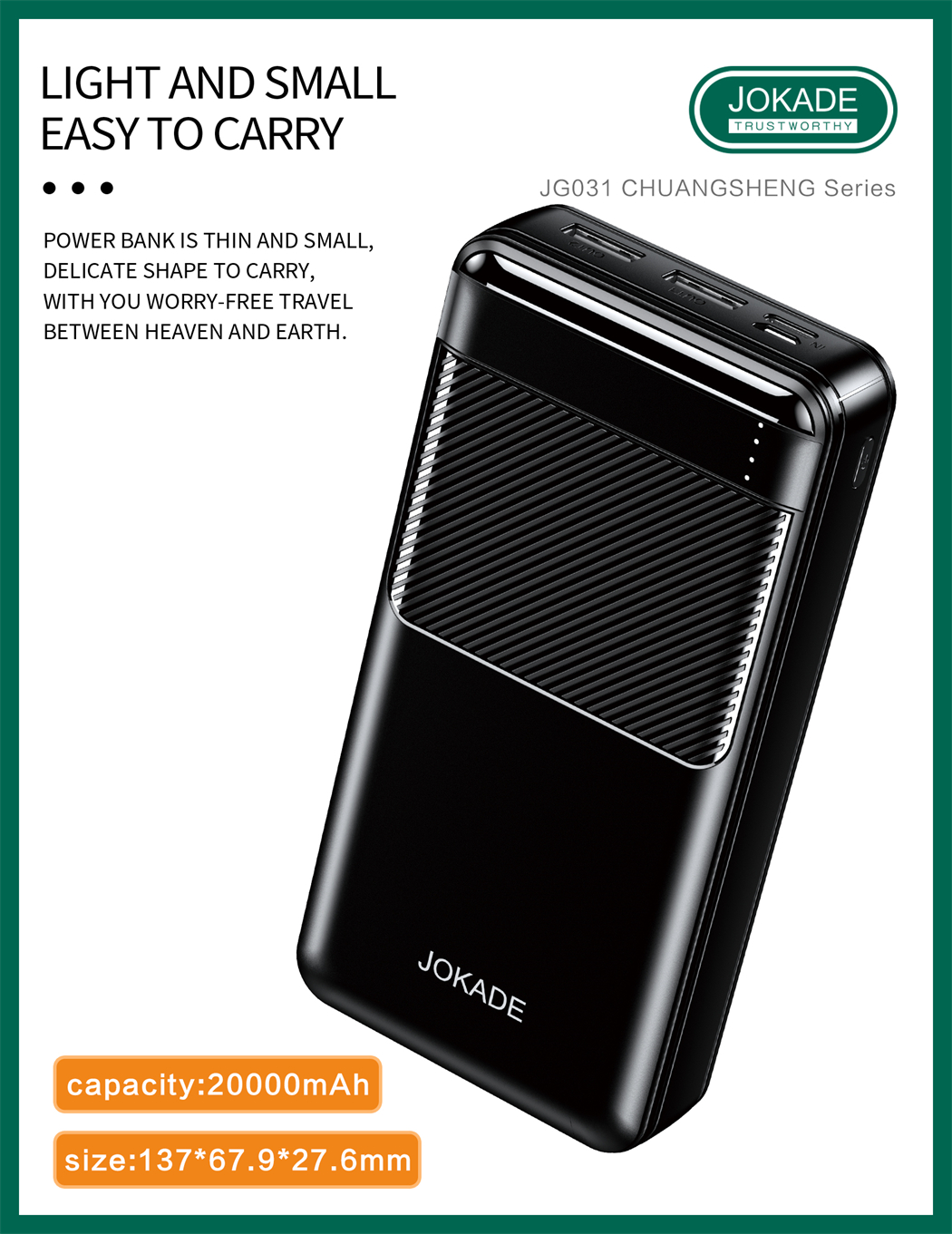 name:JG031 CHUANGSHENG Series Power Bank-20000mAh